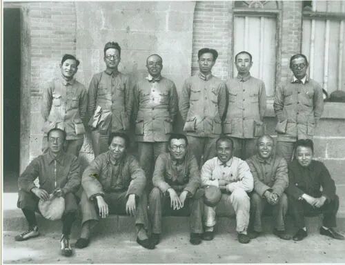 1938年9月29日至11月6日,彭德怀出席在延安举行的中共扩大的六届六中全会。这是六中全会主席团成员合影。前排左起:康生、毛泽东、王稼祥、朱德、项英、王明。后排左起:陈云、博古、彭德怀、刘少奇、周恩来、张闻天