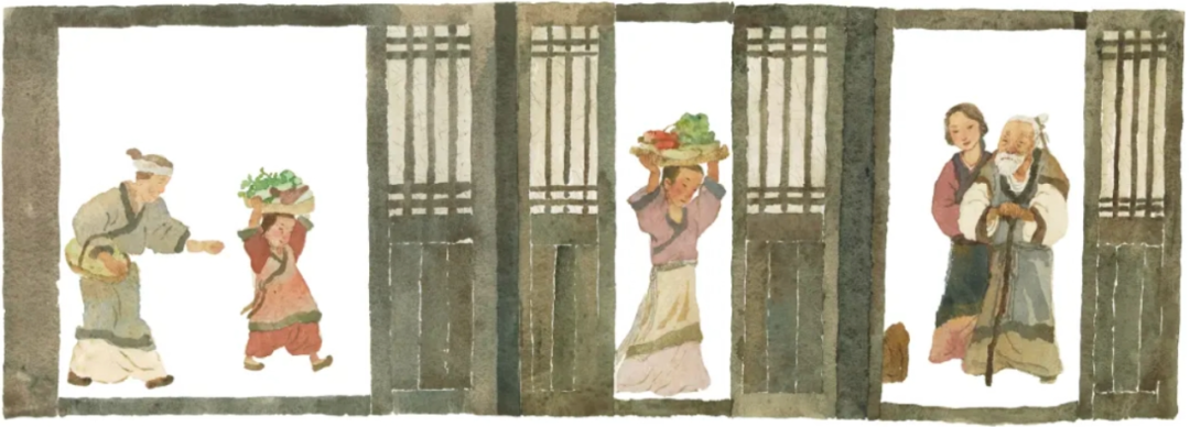 外婆会讲故事、念儿歌,带她看戏,教她作念生计的一切:作念袜子、作念鞋底,作念甜酒、作念坛子菜、包粽子、办年饭……