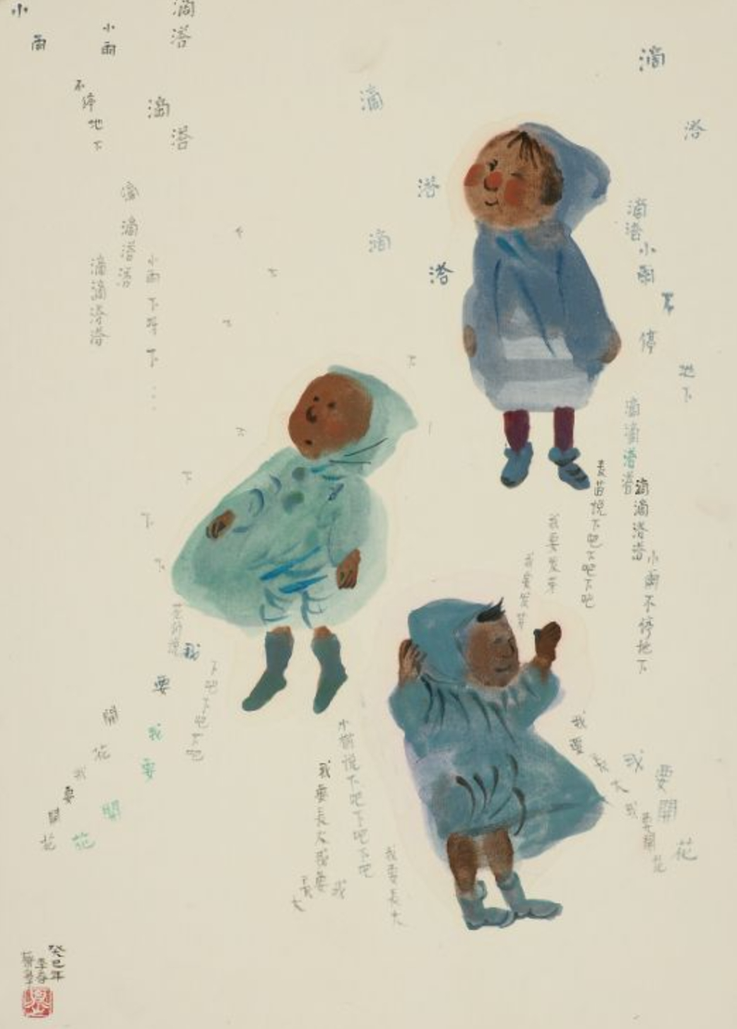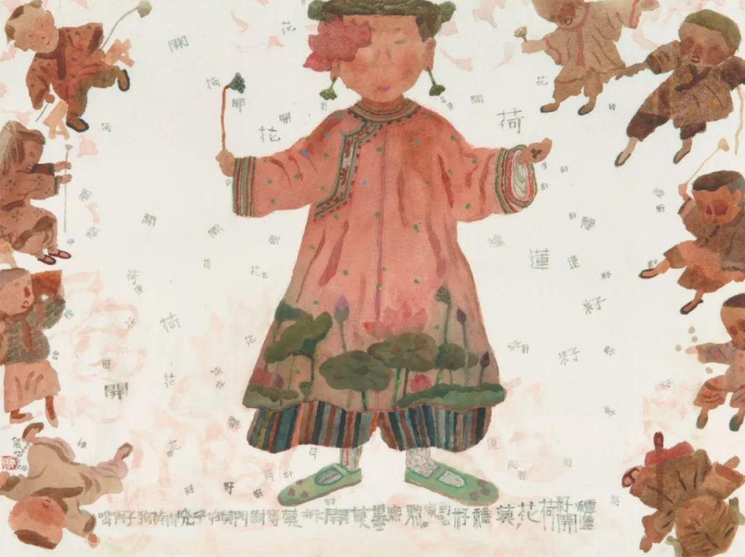 ▲ 蔡皋先生凭证儿歌“种莲子开荷花”所画