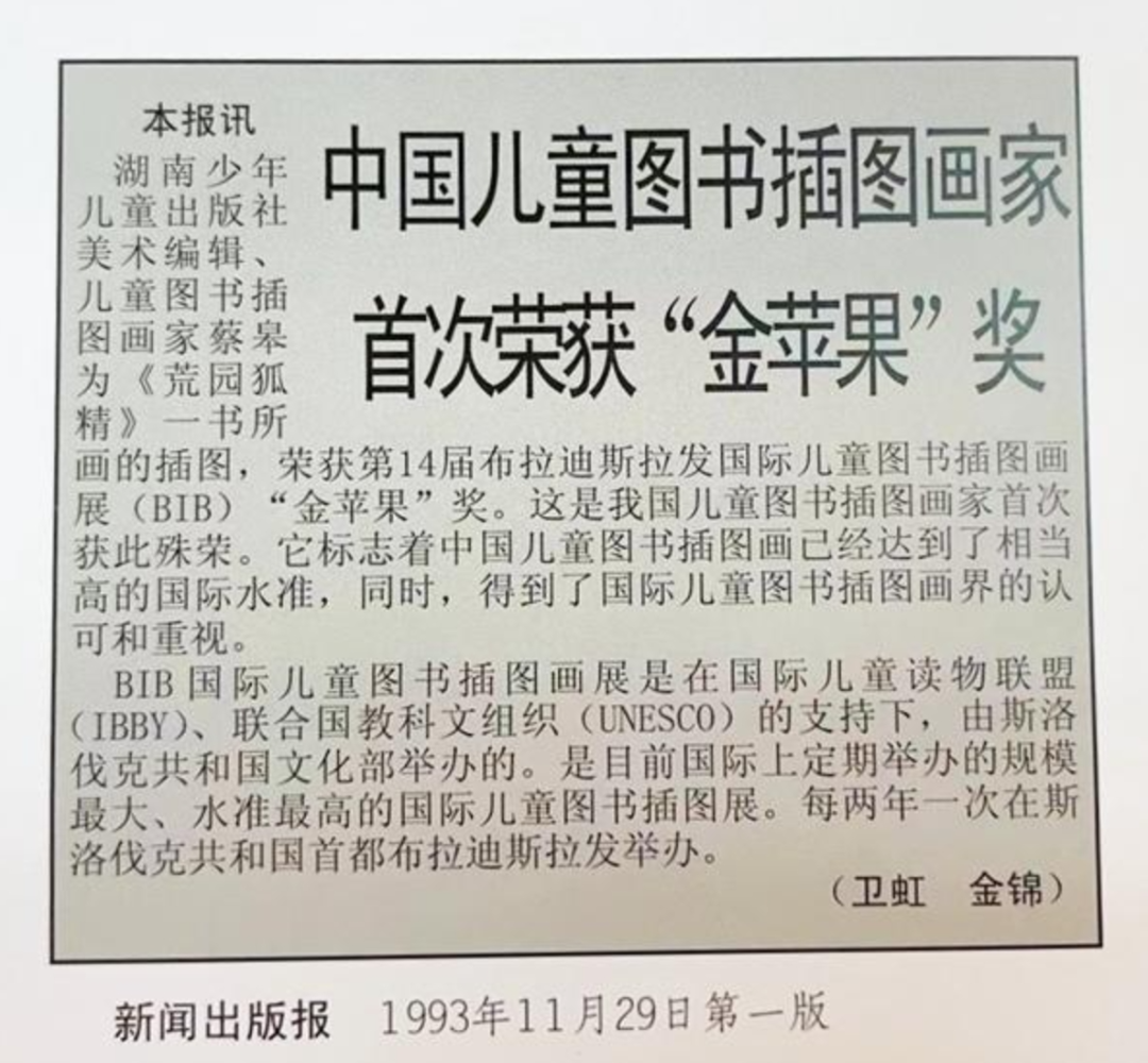 1993年,《宝儿》一举摘得海外插画界奥斯卡“BIB金苹果奖”,蔡皋也因此成为中国获此盛誉的第一东谈主。