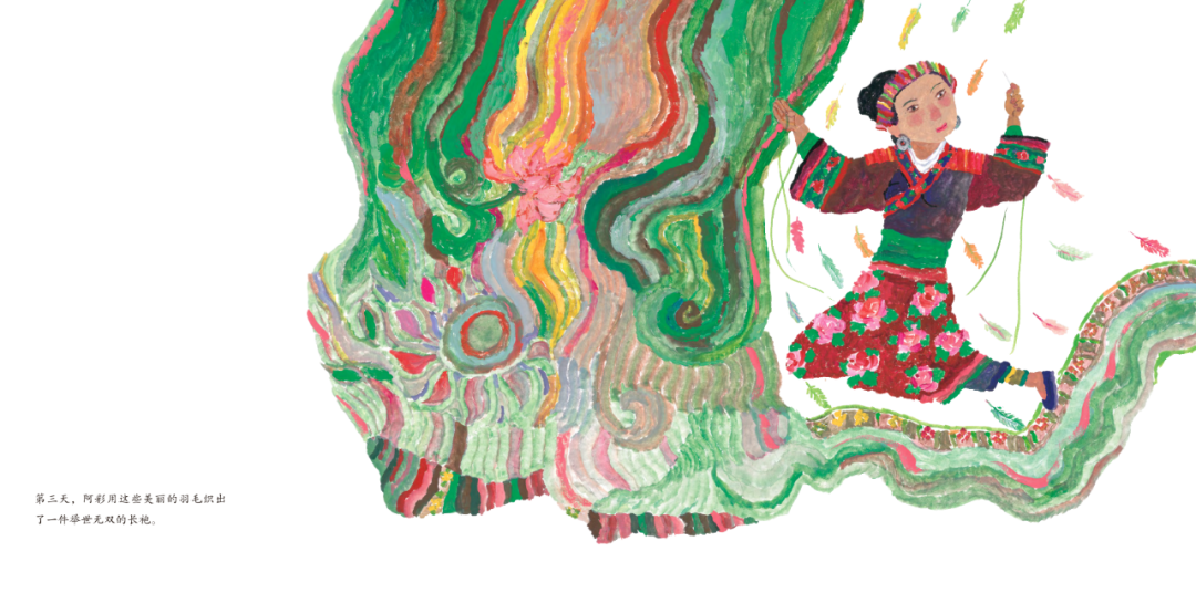 《百鸟羽衣》描写出了苗族千百年来的生计气象,青山绿水、少数民族、质朴的农民……让许多城市里的孩子开发了眼界。