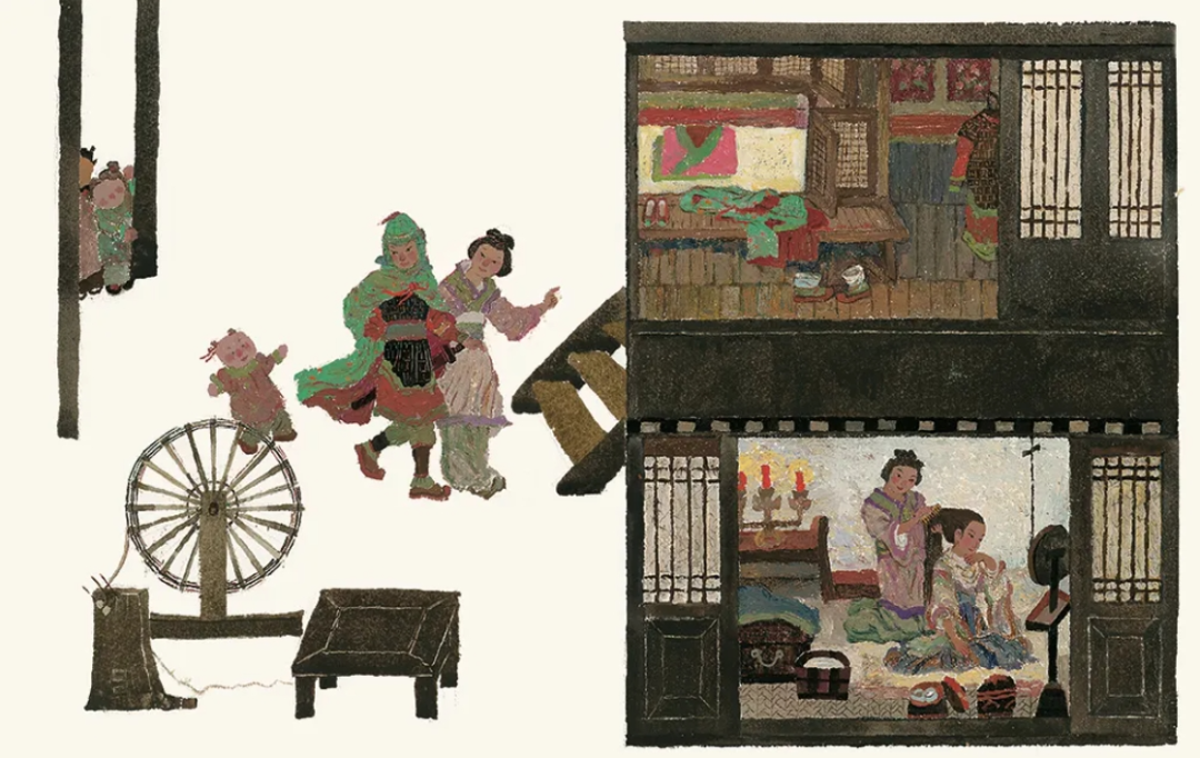是以,蔡皋先生笔下的《花木兰》,莫得刻板地呈现女英杰的一面,而是可人、害羞的款式。
